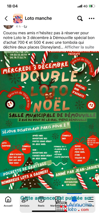 Spécial bon d’achats de à 500€ après midi le soir de 20€ à 700€ une super tombola place Disneyland Paris et la hotte du Père Noël d’une valeur 200 € et d’autres lots