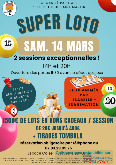 Week-end loto animé et organisé par saint-andré-Animation pensez a réservé