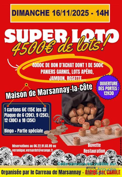 Super Loto doté de 4500 euros de lots dont 4000 euros en bon d'achat (dont un de 500), paniers garnis, rosette, jambon, lots apéros.