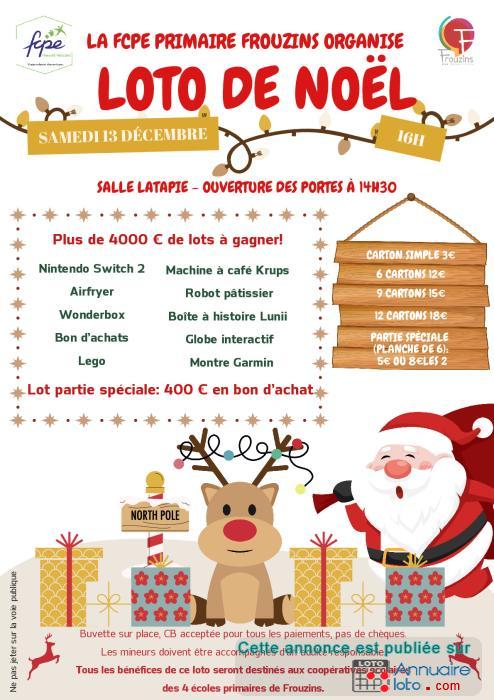 Loto de Noël organisé par l'association de parents d'élèves pour financer les projets et sorties scolaires.