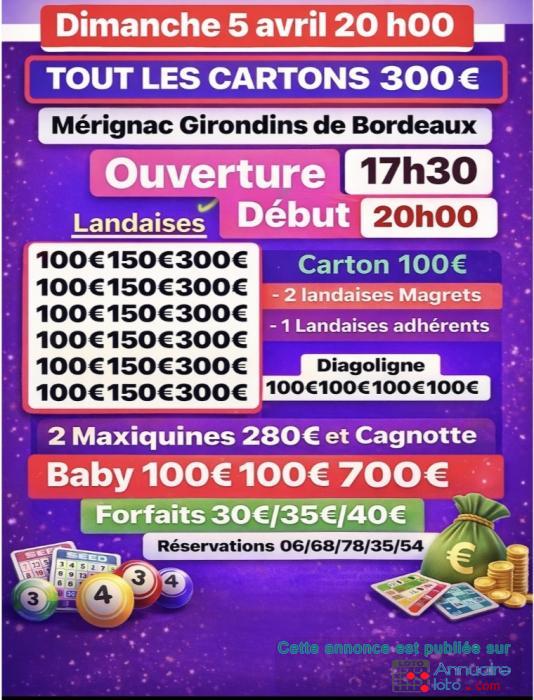 L'association Tournesol organise un LOTO en extérieur le 18 juillet 2025 à 17h sur le quartier du Burck à Mérignac (33700).