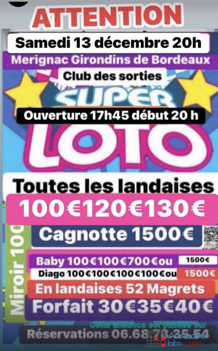PAS DE Carton individuel Formule 30€ par joueur non parteageable Plaque de 24 cartons + 6 cartons spécial 2 fois pour les magrets 1 baby de 12 cartons pour les 700€ 4 Maxiquines 280€ Non partageable NOUVEAU FORFAIT du CLUB 35€ par joueur TOUT TOUT COMPRIS Jusqu’à 24 cartons 1 Baby de 18 cartons pour 700€ 6 Maxiquines pour 280€ 6 spécial pour 2 fois pour les magrets 1 diagoligne pour les 400€ Non partageable Formule gros joueur 40€ par joueur Plaque de 36 cartons +8 cartons spécial , 2 fois pour les magrets 2 baby de 36 cartons pour les 700€ 8 Maxiquines pour 280€ Non partageable
