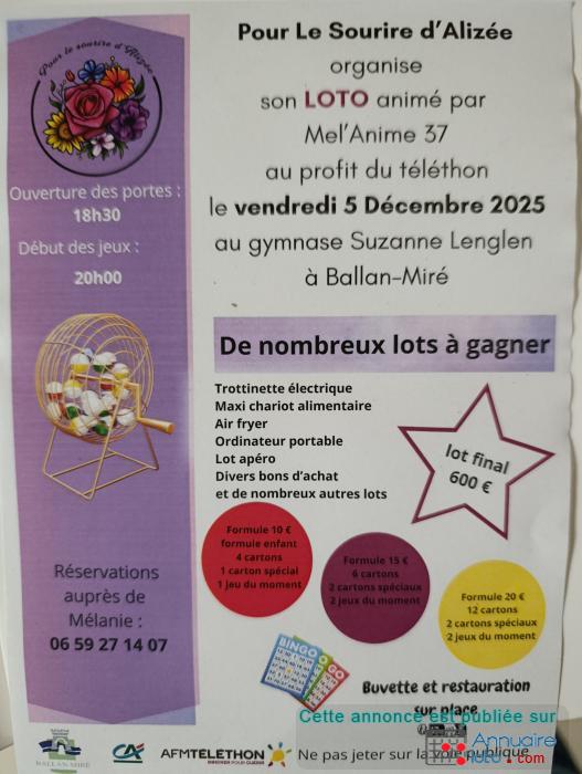 Super loto le sourire d'Alizée pour le Téléthon animé par Mélanie 06.59.27.14.07 à Ballan-Miré