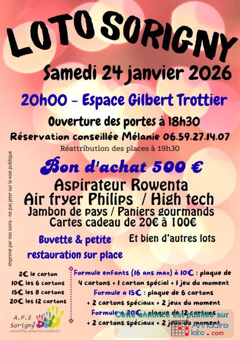 SUPER LOTO DE L'APE ANIME PAR MELANIE 06.59.27.14.07 à Sorigny