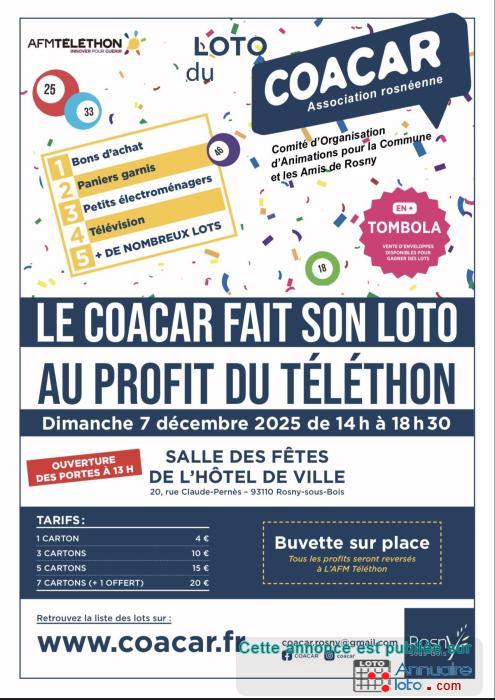 Loto du COACAR au profit du téléthon à Rosny-sous-Bois